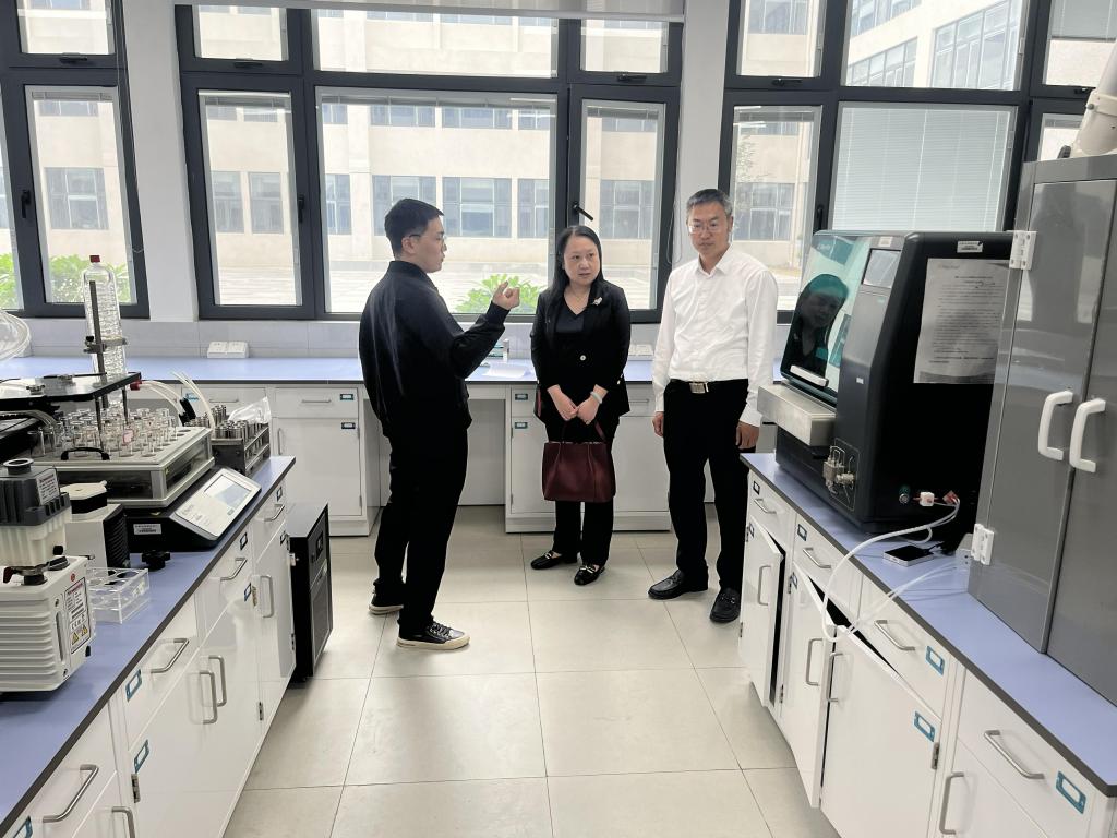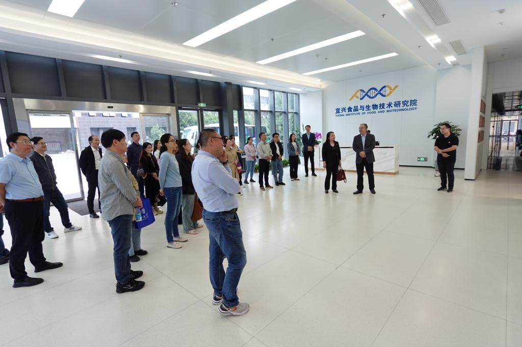 新进机关教职工还赴宜兴食品与生物技术研究院进行参观学习,原江南大学校长助理张光生向大家介绍了研究院成立的主要背景和概况,研究院的分布架构、运行情况,带领大家依次参观了团队实验室、公共平台等。