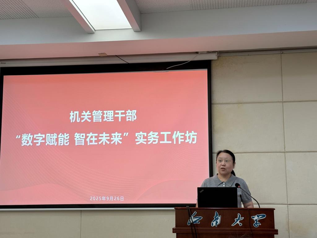 9月26日下午,机关管理干部“数字赋能 智在未来”实务工作坊第一讲于文浩馆313会议室正式举行,活动由机关党委书记张菁主持,吸引了来自全校各部门近70名管理干部参加。